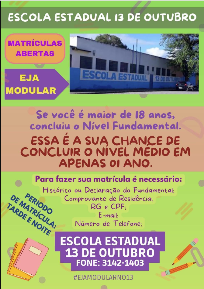 Se você é maior de 18 anos e só concluiu o Ensino Fundamental , essa é sua chance.