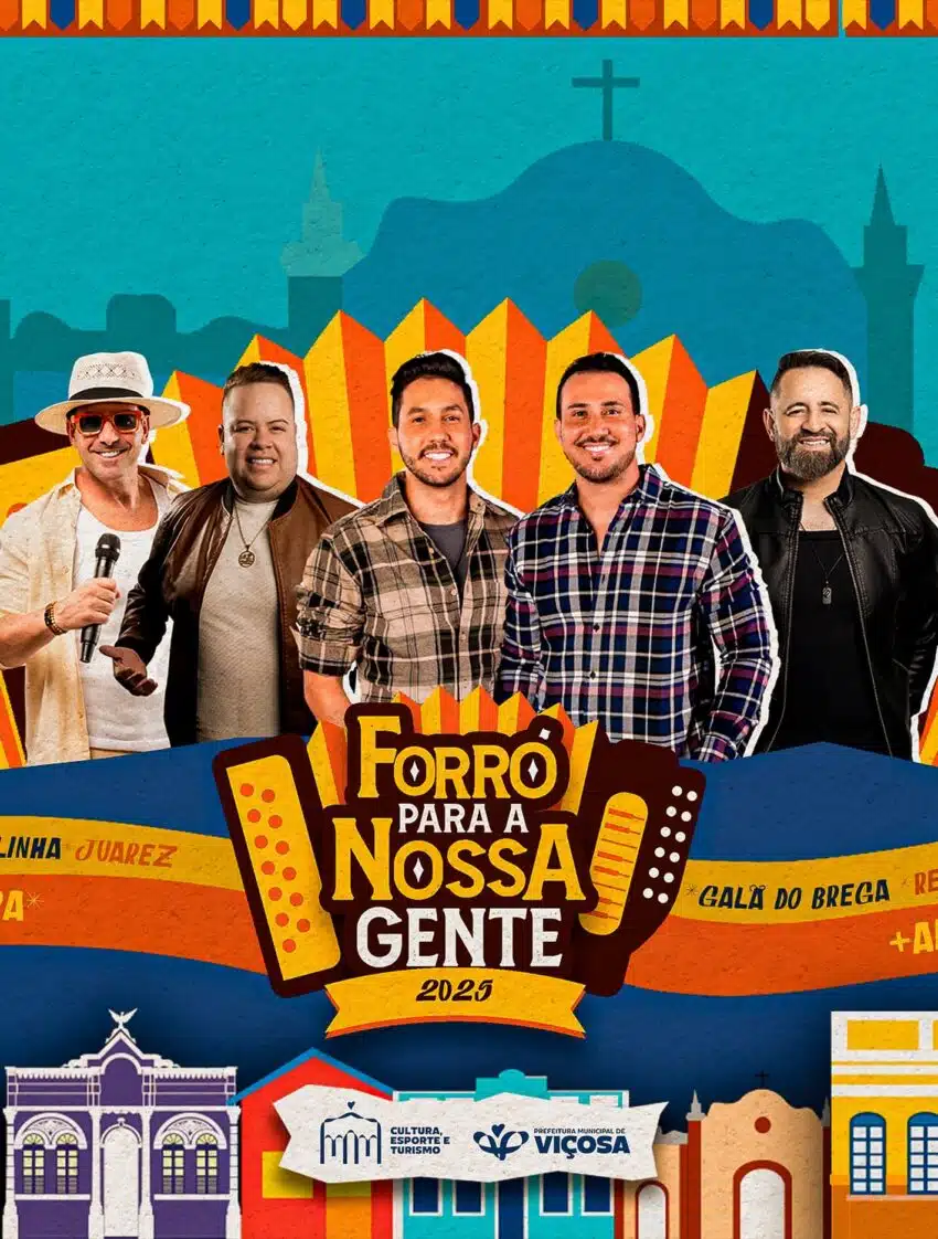 A Prefeitura de Viçosa-AL vai gastar mais de R$ 1 milhão com a realização do São João 2025. Só com os cachês das atrações principais, já foram empenhados R$ 930 mil. Os valores confirmados até agora são: